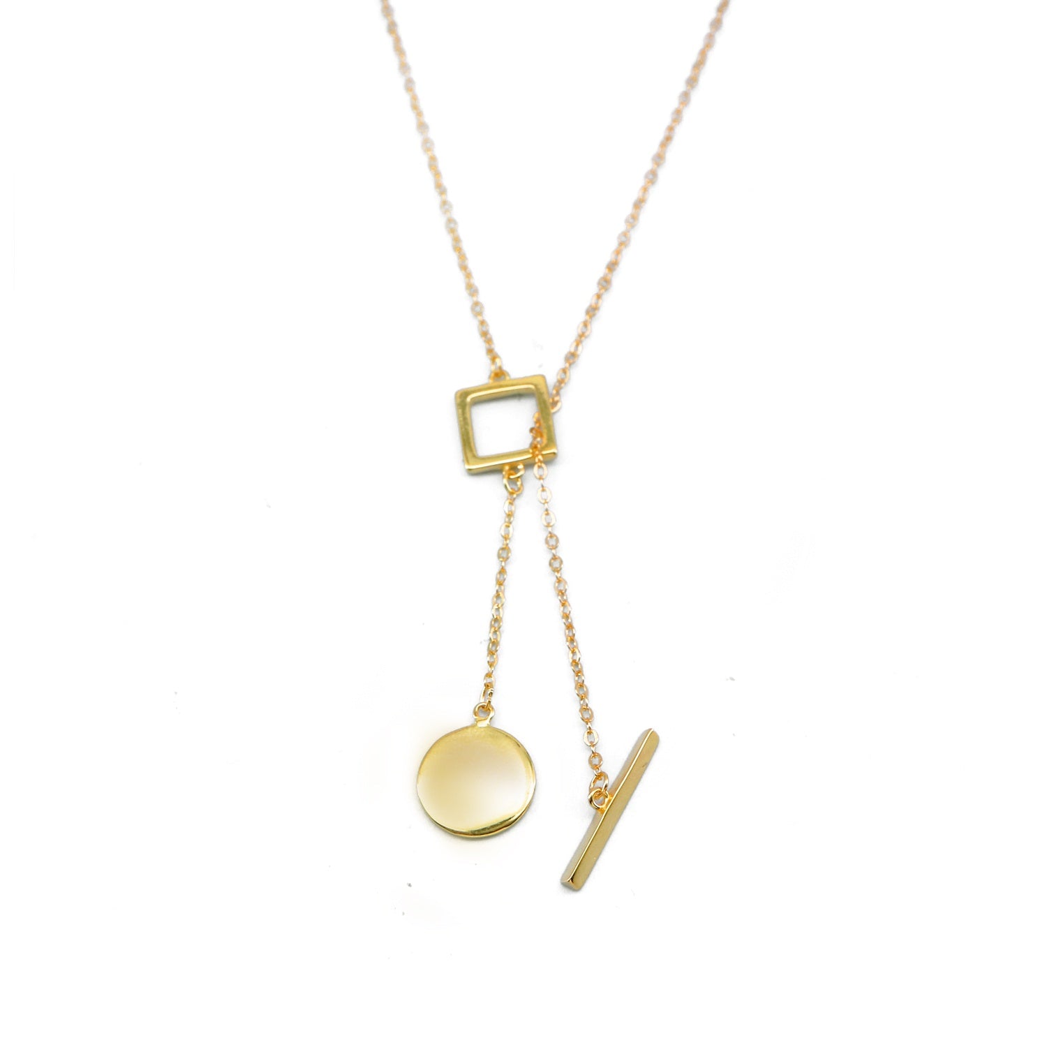 Hemline Gold Plated Open Square with Polished Round Drop Toggle Lock Necklace
