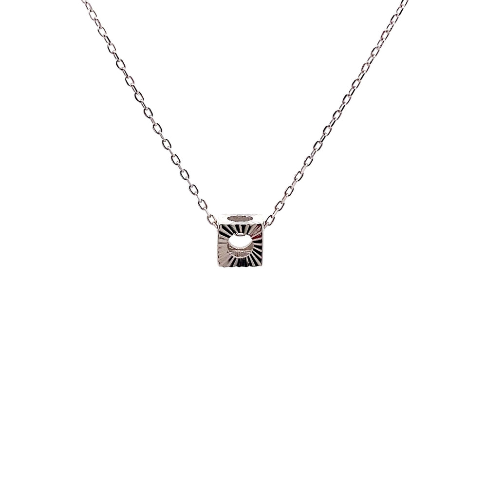 N5262 SILVER 16IN+2IN CHAIN 3D MID OPEN CUBE PENDANT 2.16G