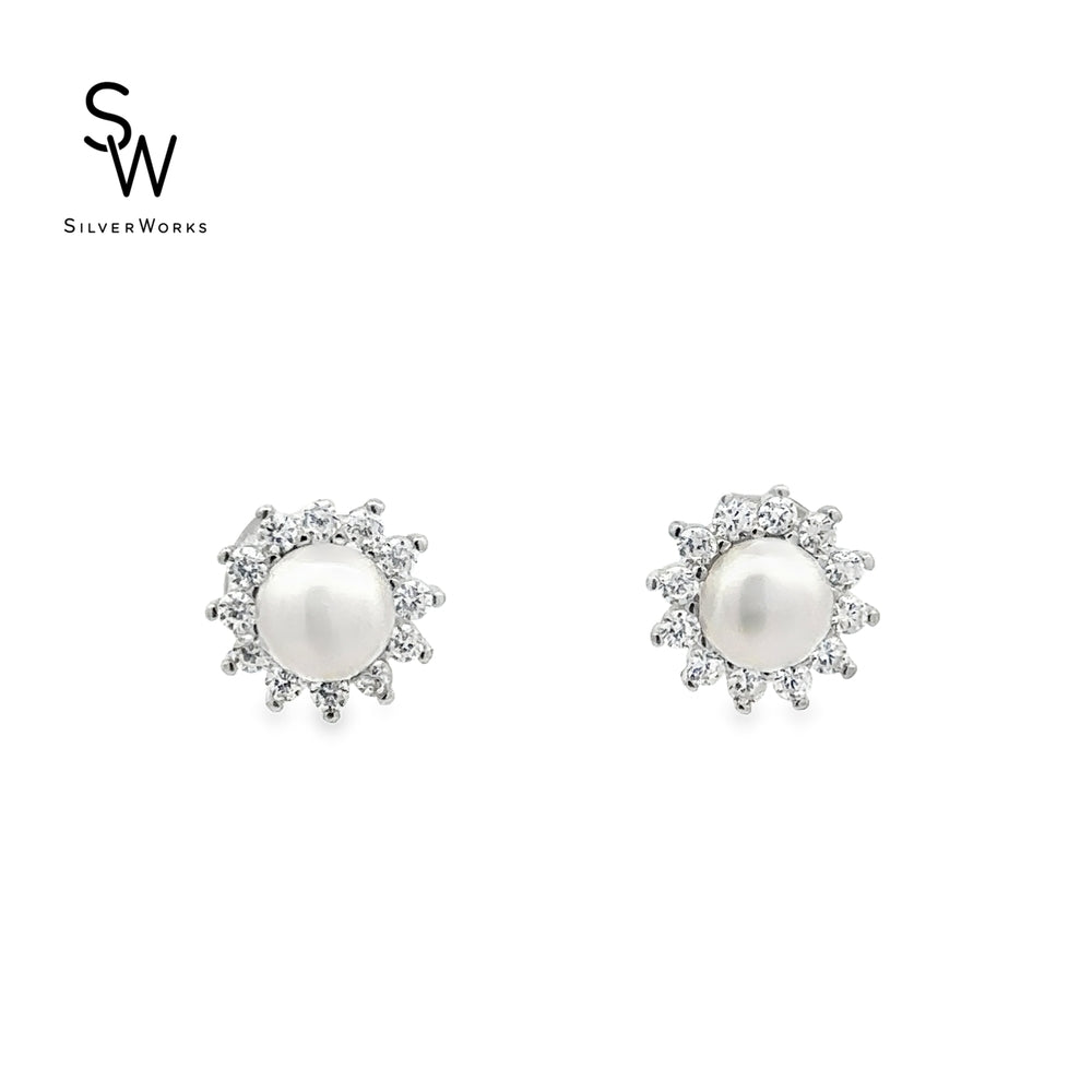 S885 RHOD CZ FLWR WTH FRSHWTER 8MM PNDNT 6MM STUD SET 3.2G