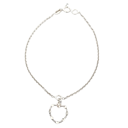 The Stella Charm Bracelet in 925 sterling silver showcases a delicate open heart charm, adding a subtle, elegant touch with its clean, modern design.