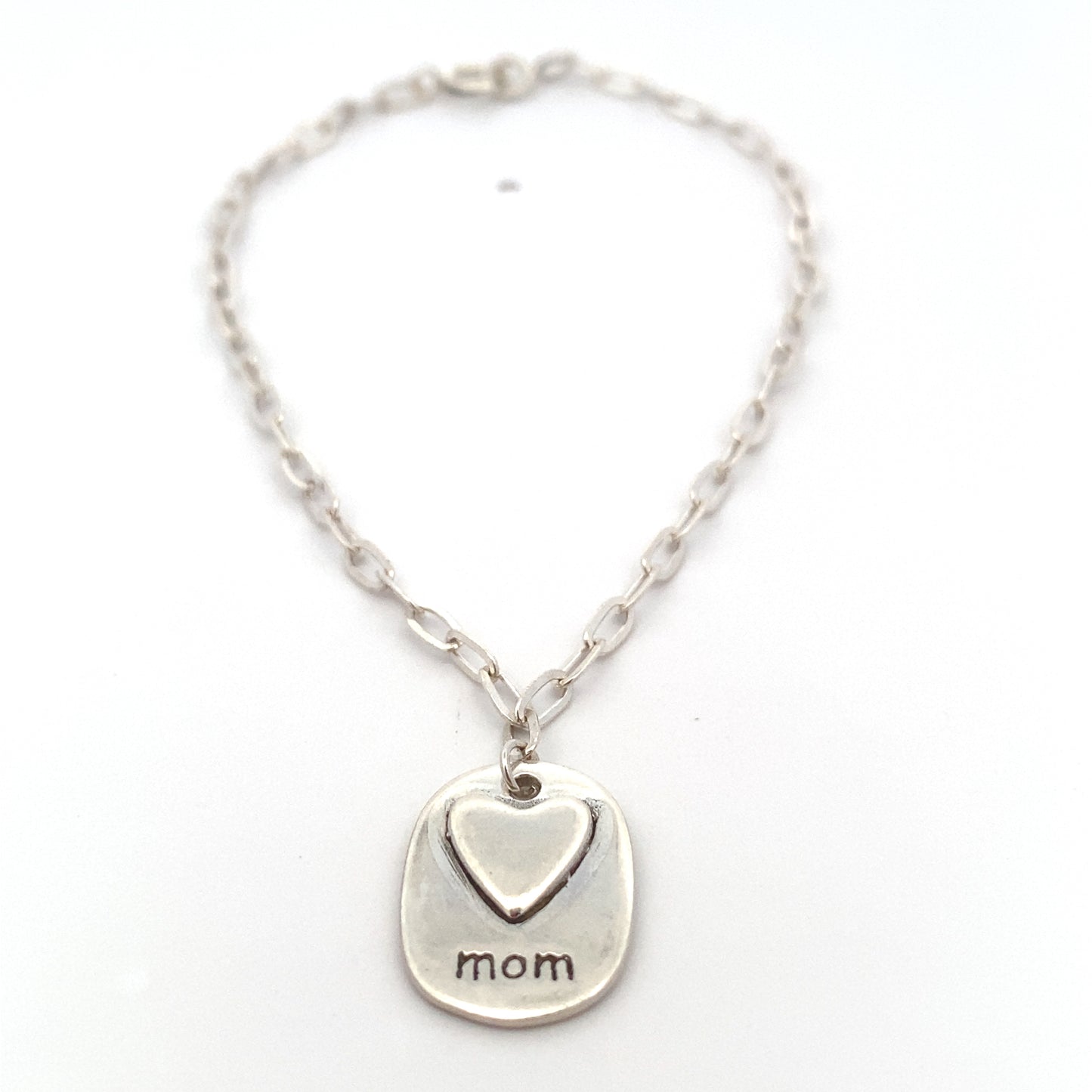 Raja Heart and "Mom" Engraved 925 Sterling Silver Charm Bracelet