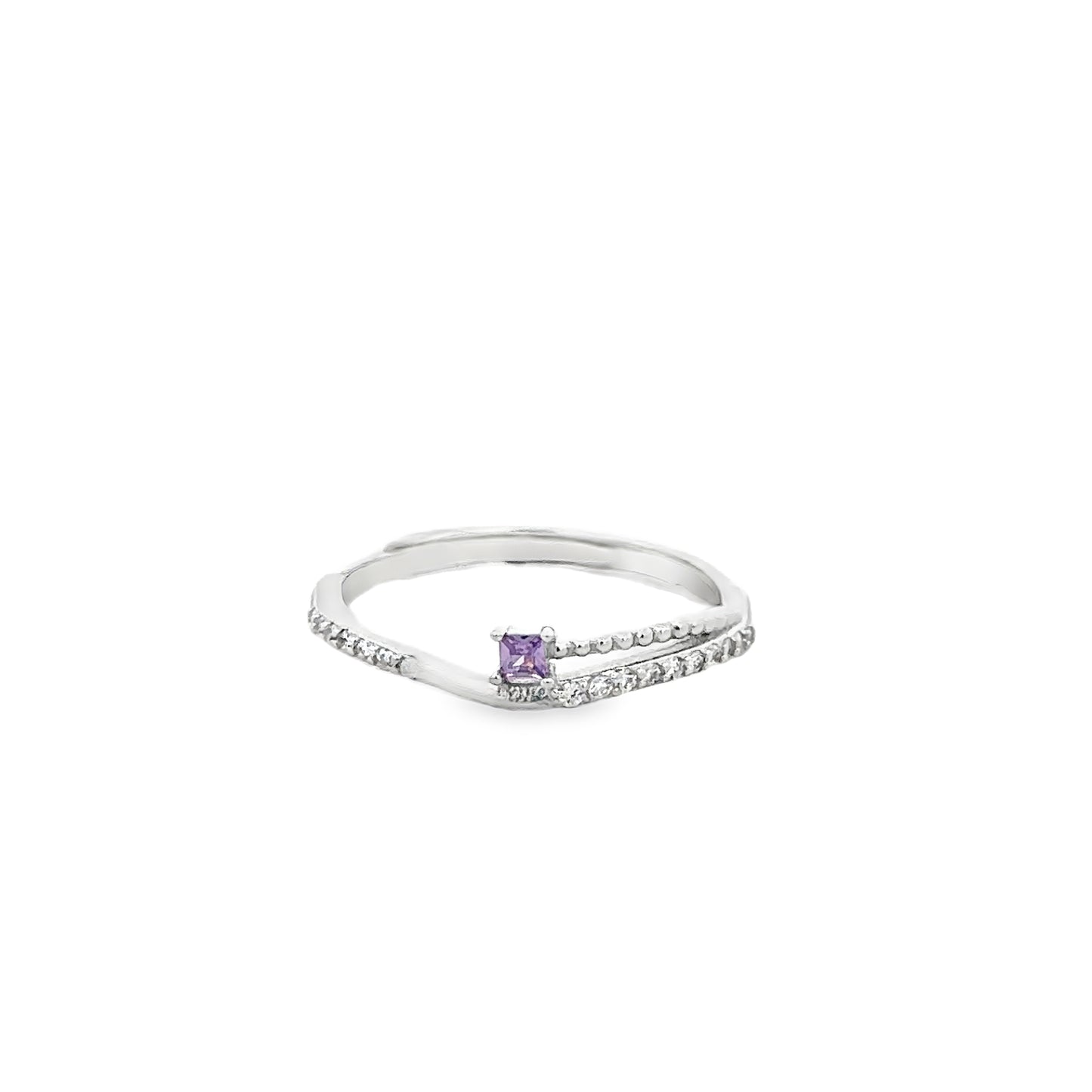 R6708 RHOD 2MM AMTHYST CZ DTTD HLFLYRD MNMLST ADJ RNG 1.3G