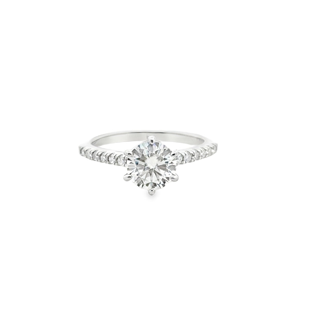 R6734 SILVER 6.5MM 1CT RND MOISSANITE SIDE N HALF CUBIC ZIRCONIA 2RING 3.1G