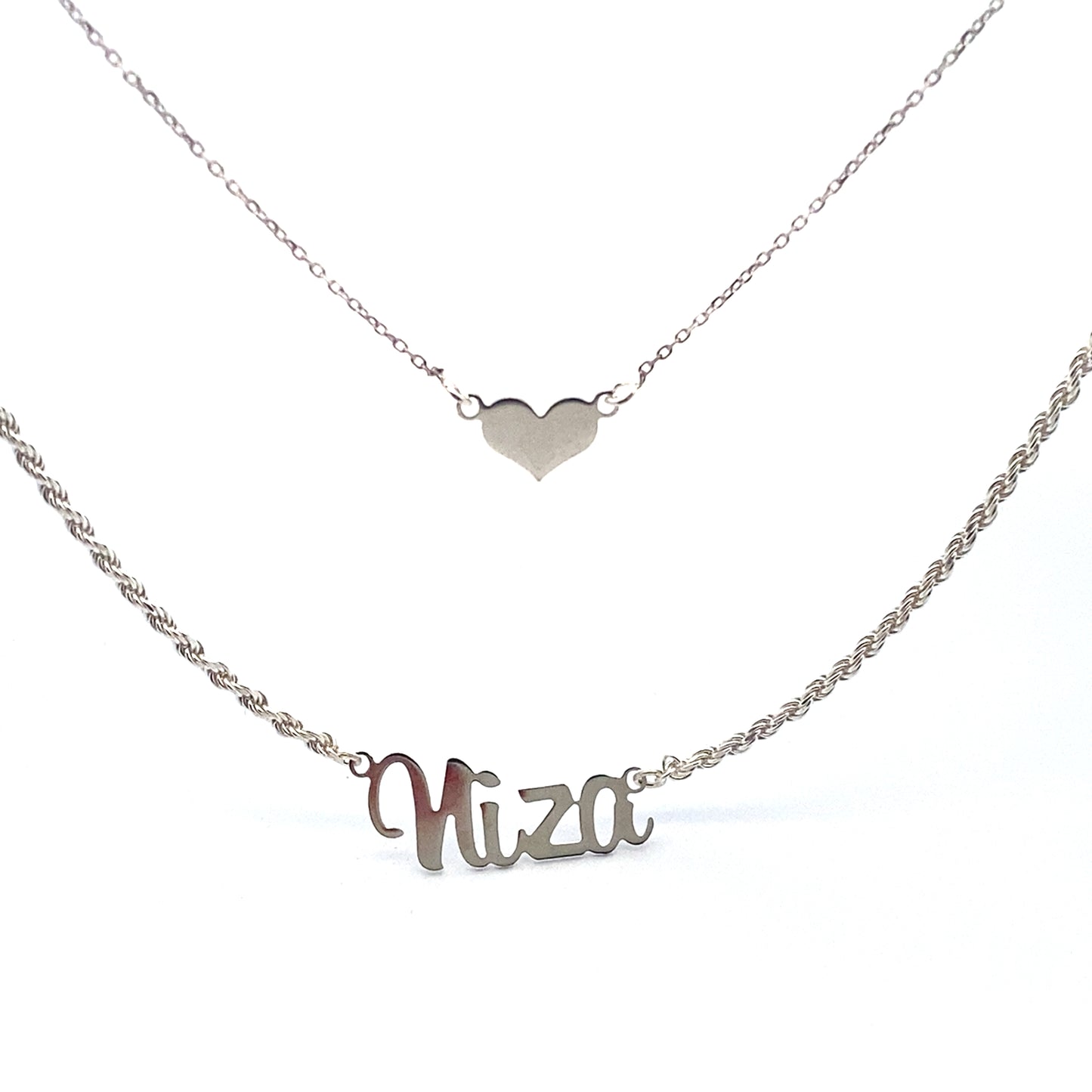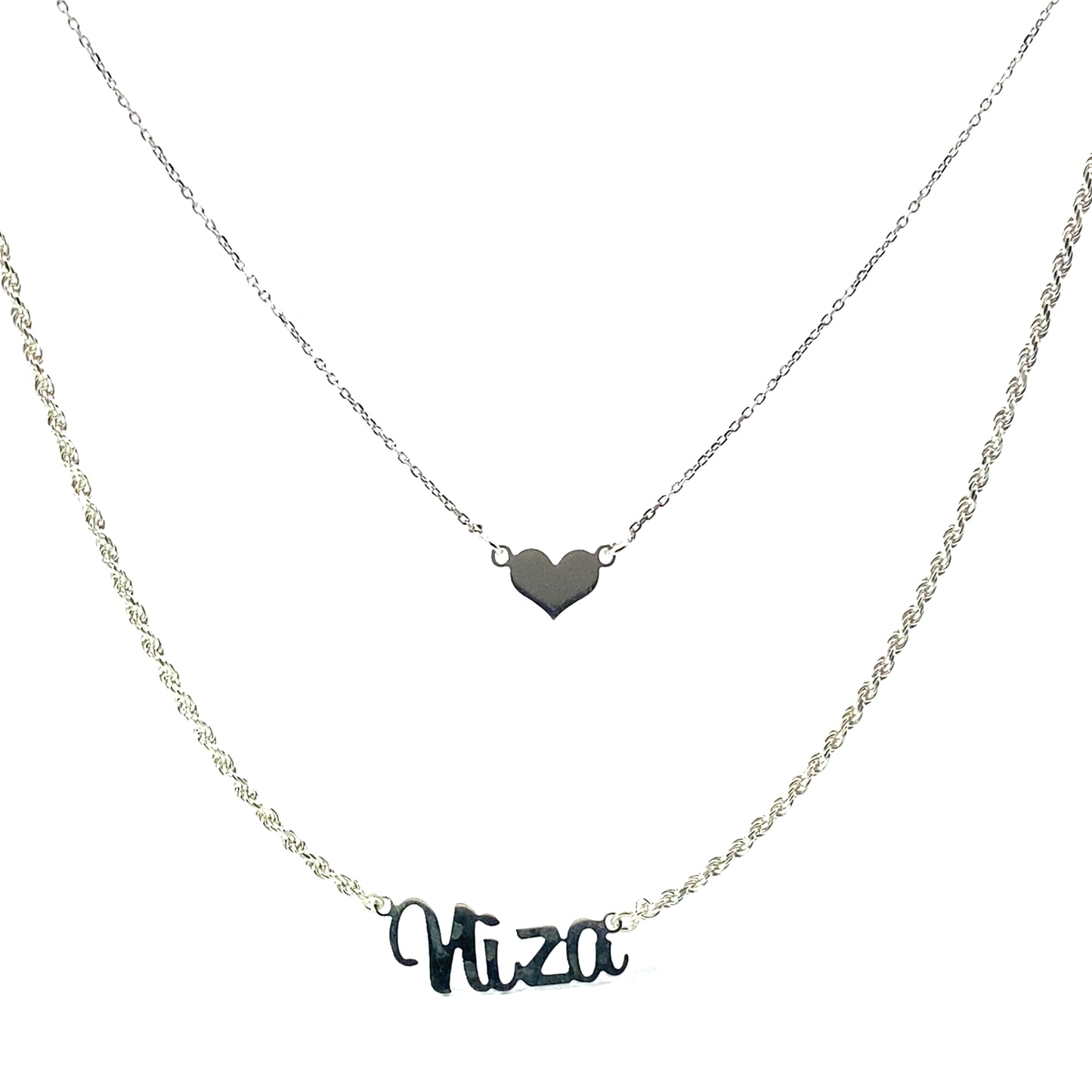 PC10-X SS DOUBLE CHAIN HEART W/ NAME
