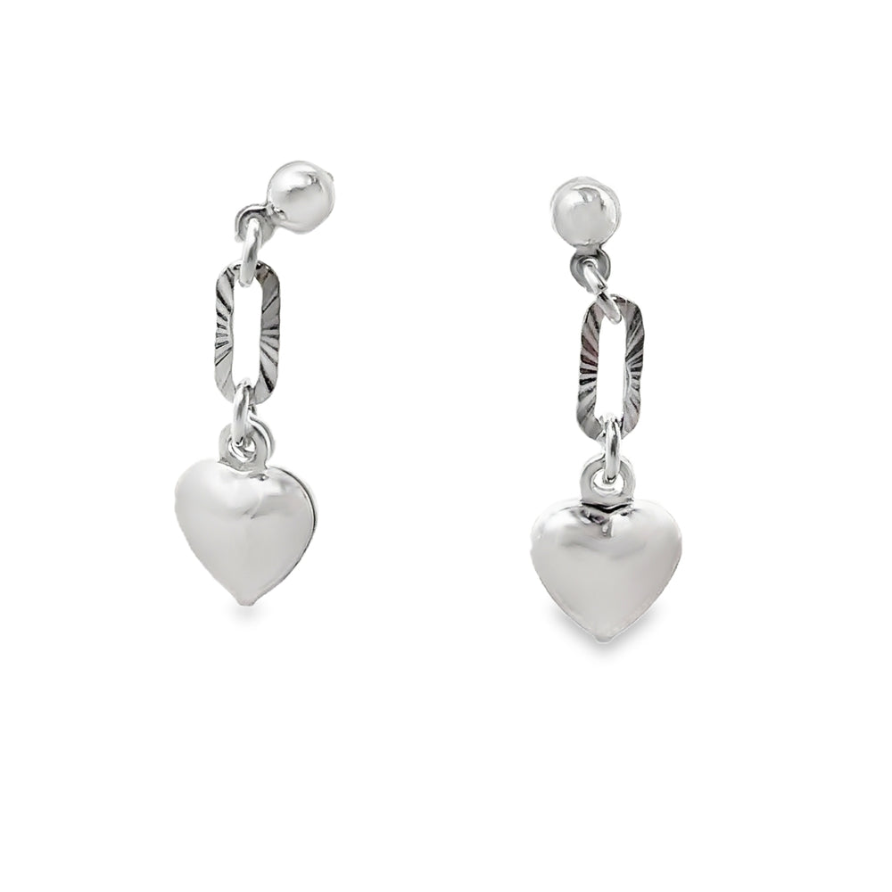 E7930 SILVER PLAIN HEART LINK DANGLING EARRING 2.6G