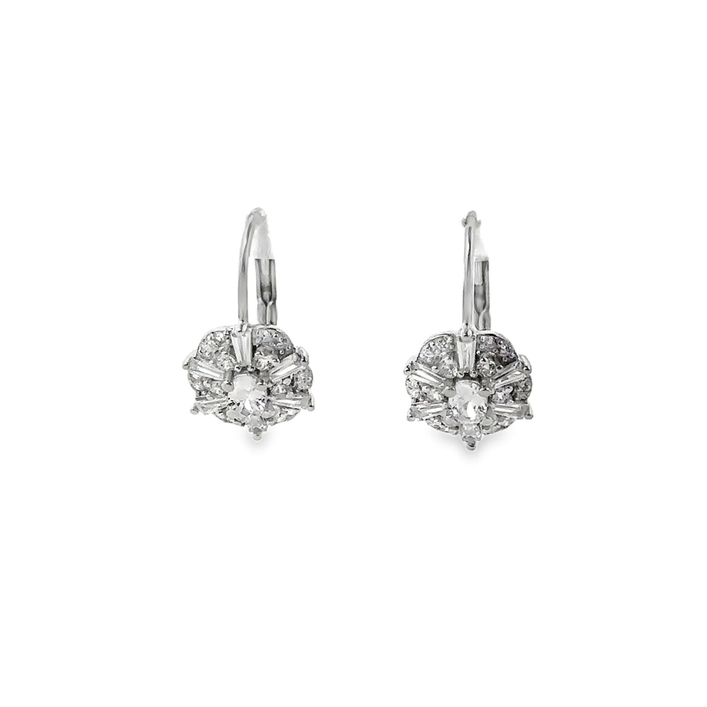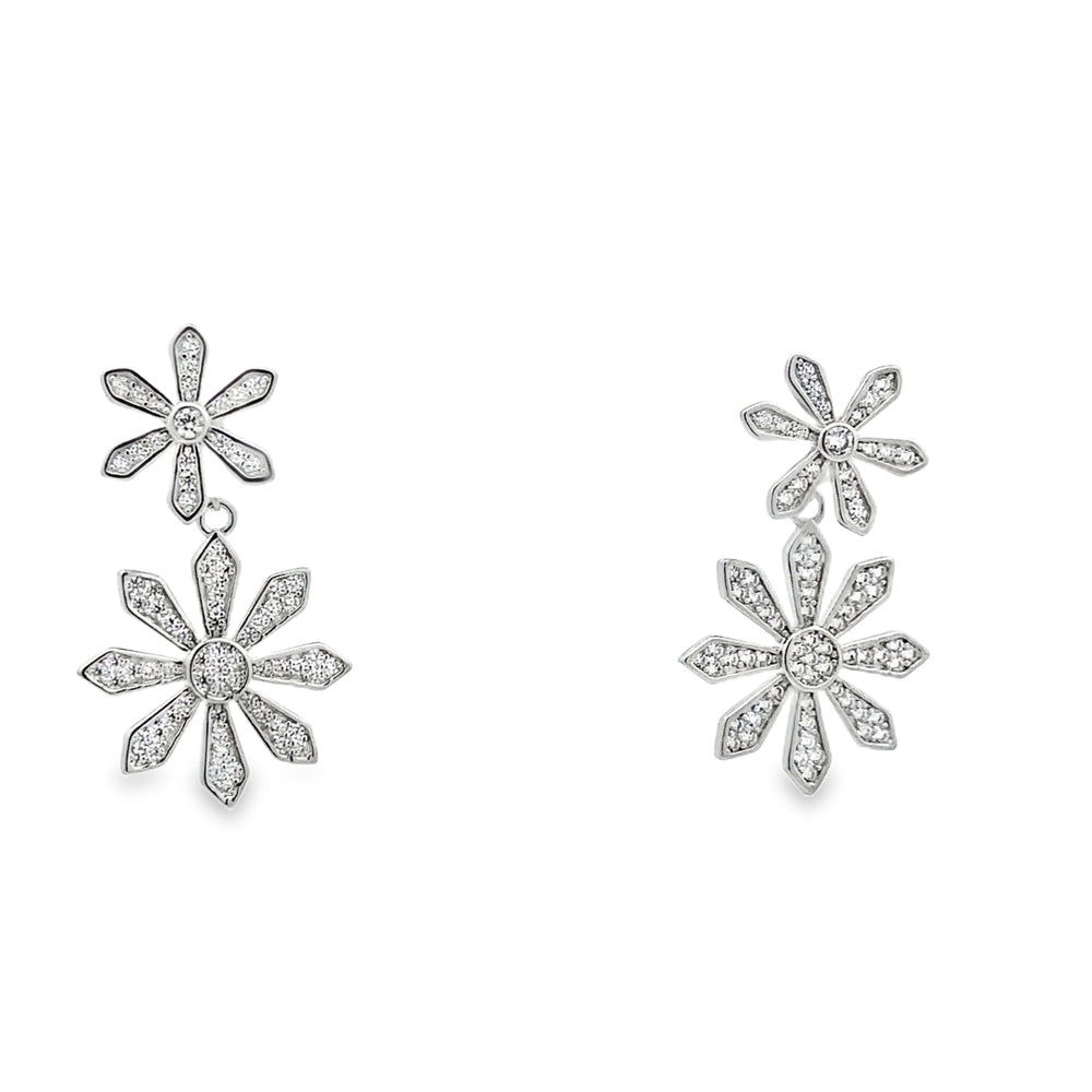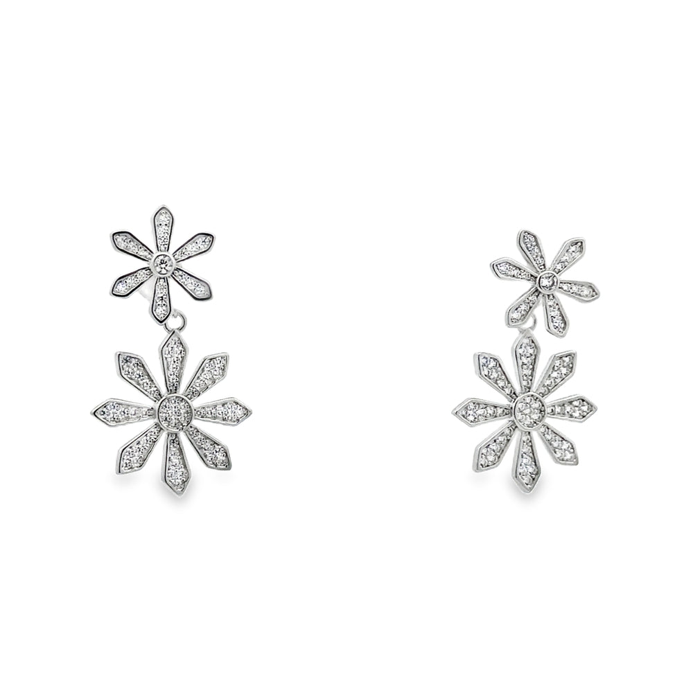 E8130 SILVER STUD 12MMTOP 16MMDNGLNG FULLCZ FLWER EARRNG 3.3G