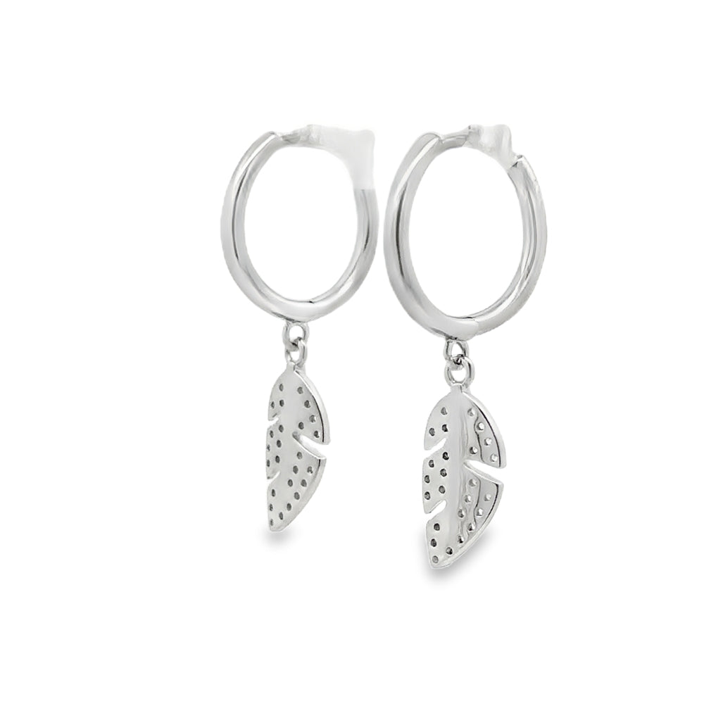E8128 SSLVR HOOP WTH DNGLNG FULLCZ LEAF EARRNG 2.3G