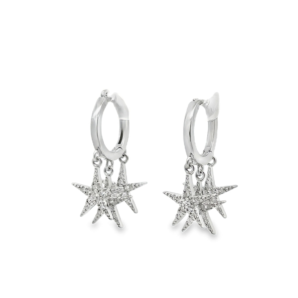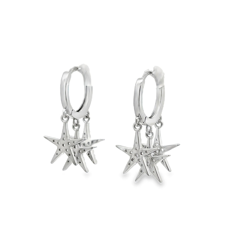 E8132 SILVER HOOP WTH DANGLNG 3FULLCZ STARS EARRNG 2.3G
