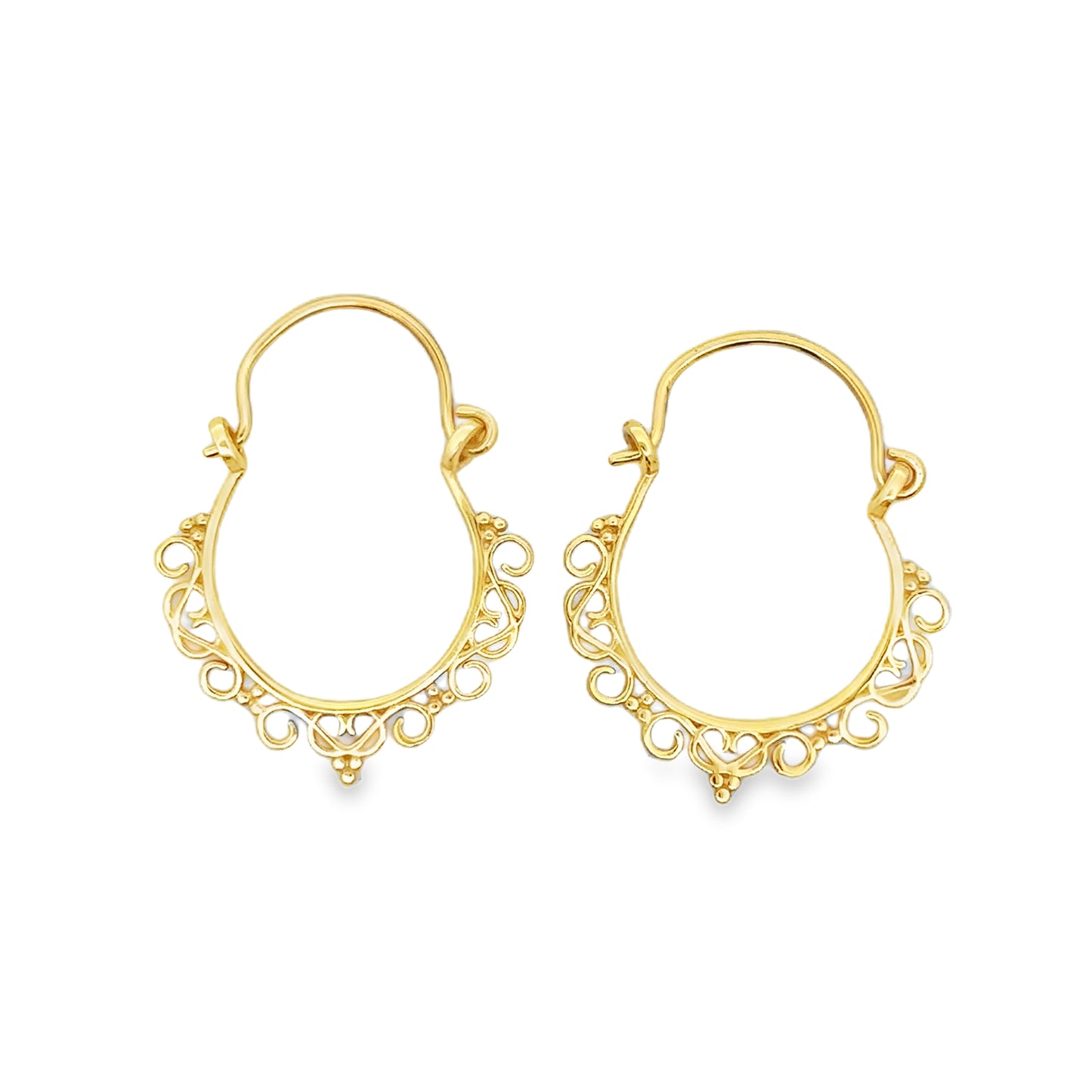 E8164 GOLD PLATED CROWN PTTRND FILIGREE HOOP 2.2G