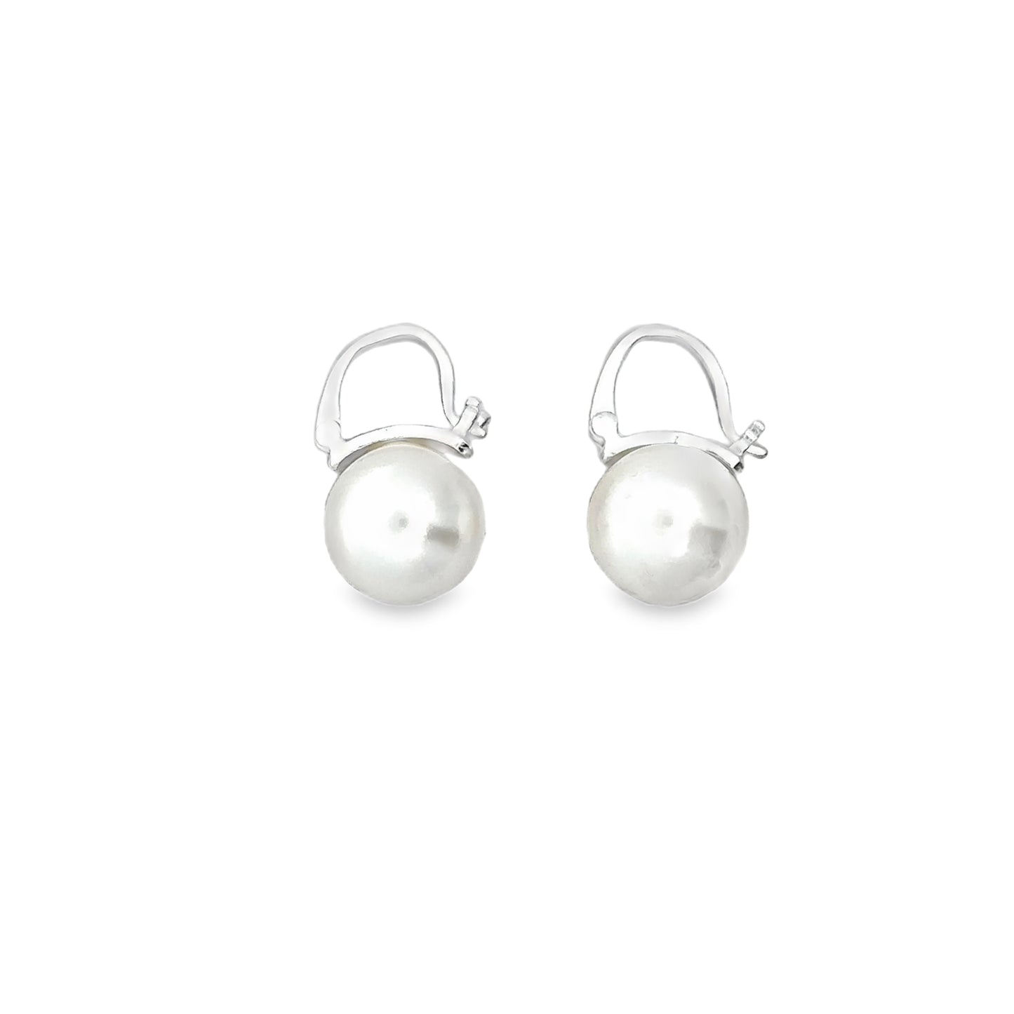 E8165 SILVER 10MM ROUND PEARL EARRING 4.3G