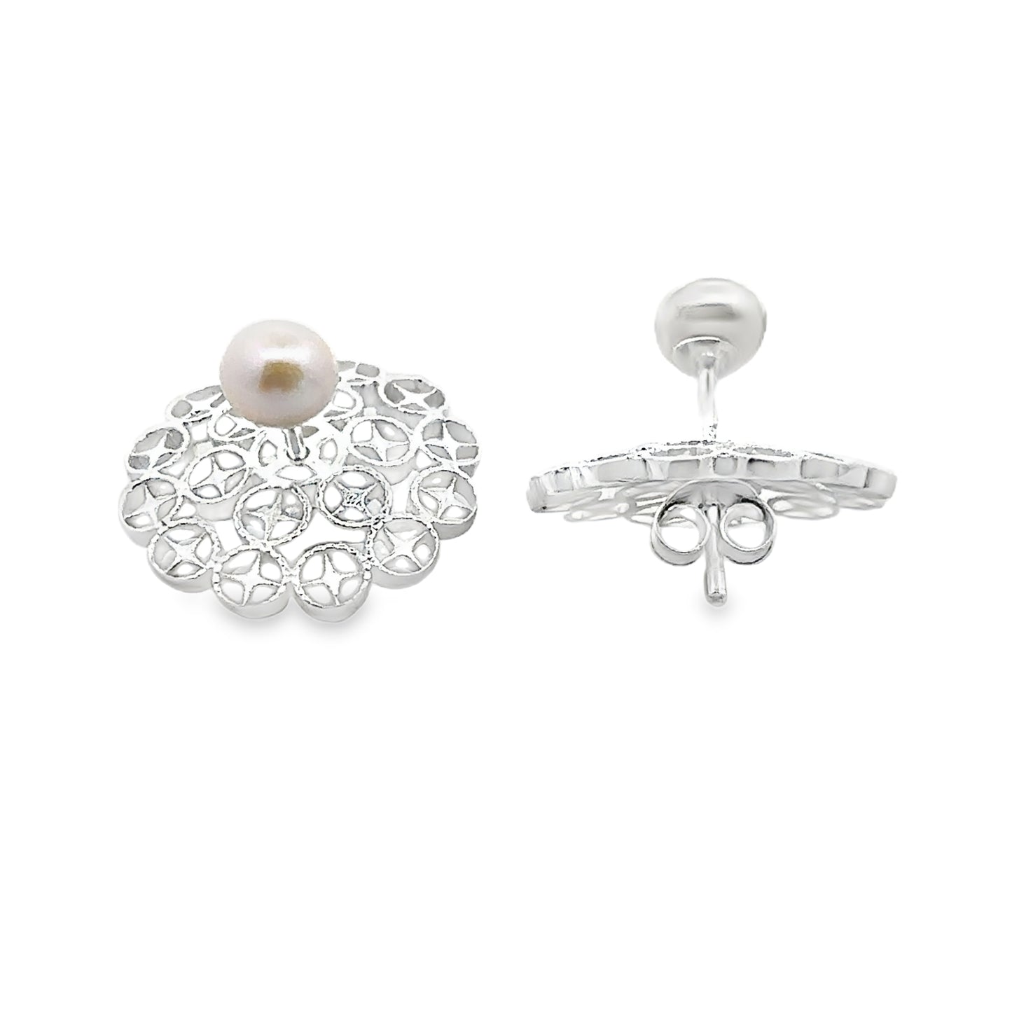 E8168 SILVER MVBLE PTRND IN 5MM PEARL STUD 3G