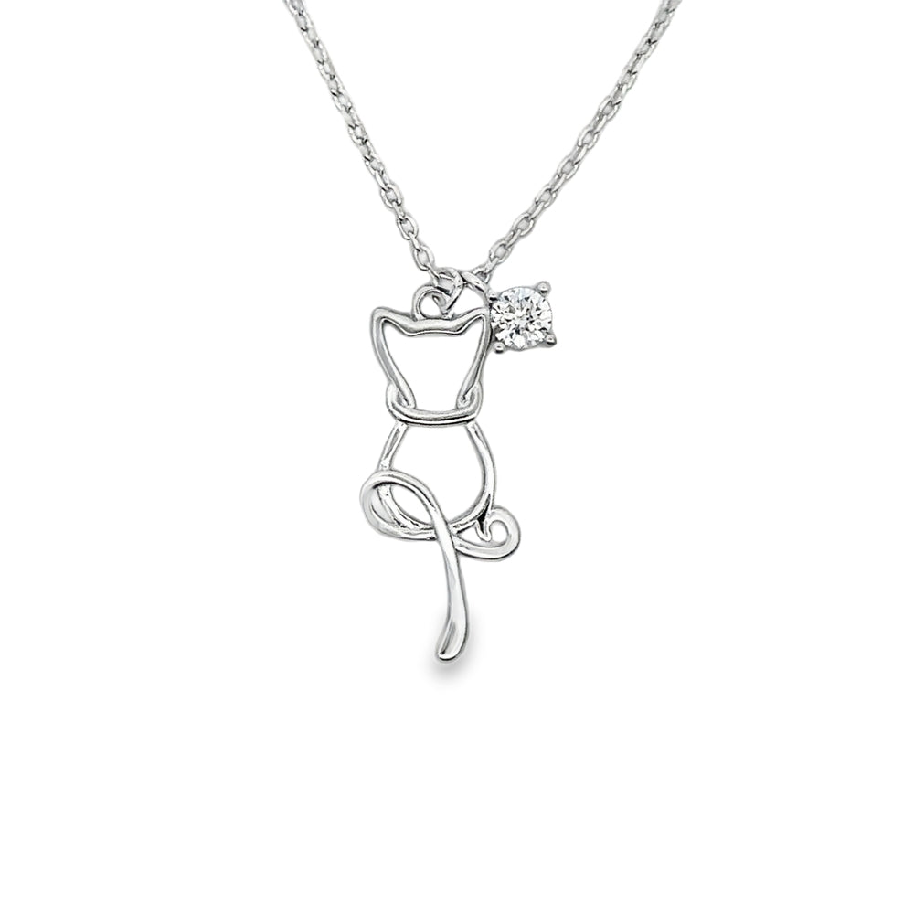 N5345 SILVER 16IN+1.25IN CHAIN CUTOUT CAT PENDANT MVBLE 3MM CZ 1.6G