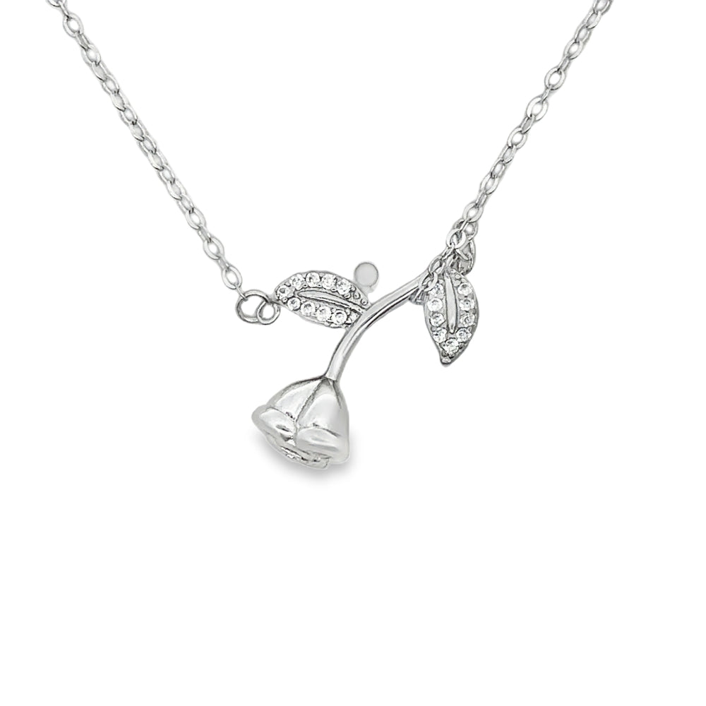 N5346 SILVER 16IN+1.5IN CHN 20MM ROSE FULLCZ LEAVES PNDNT 2.3G