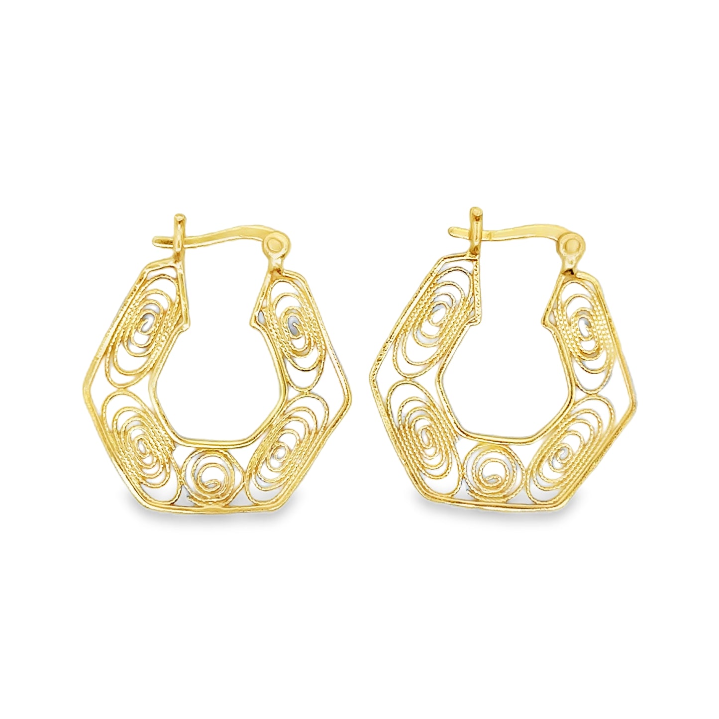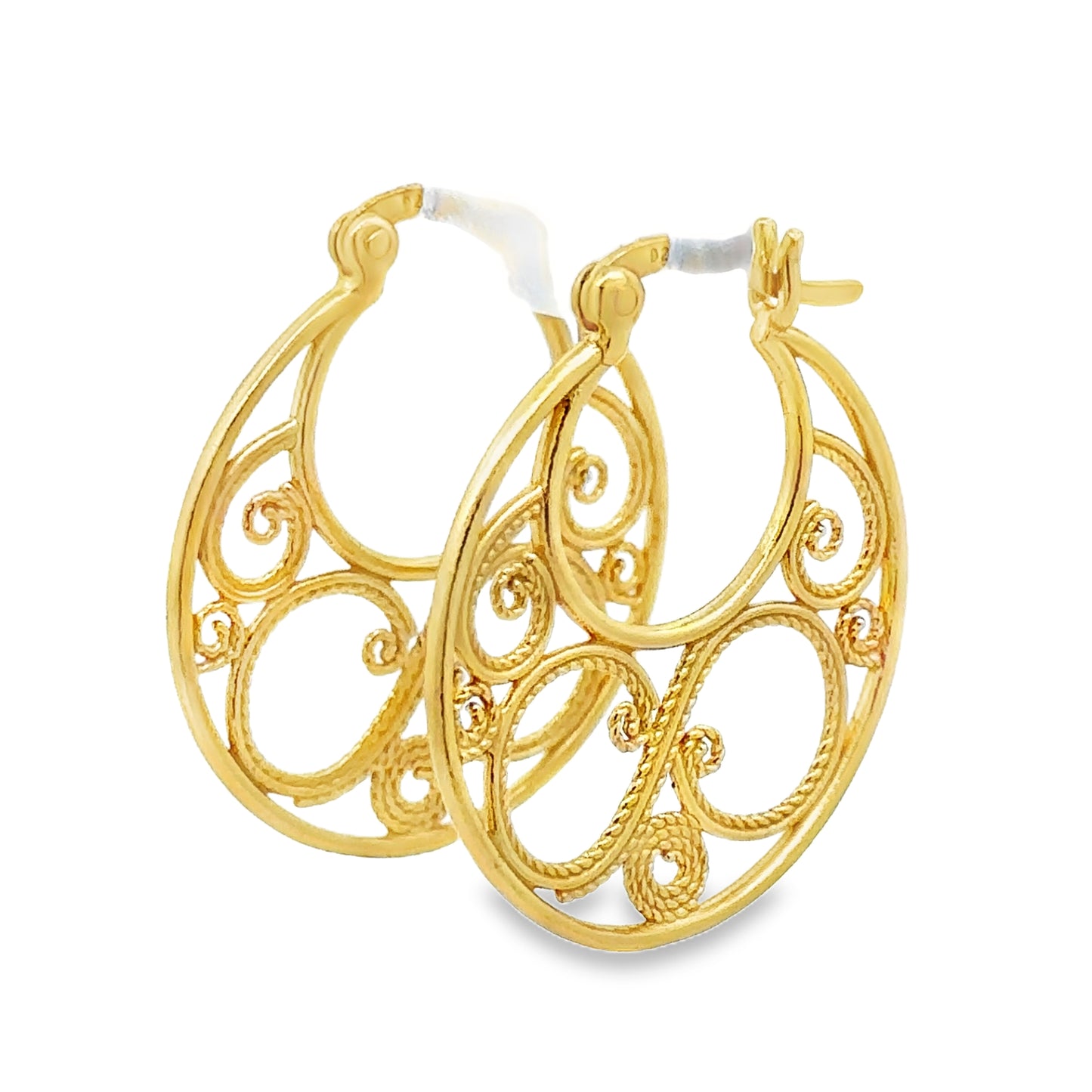 E8160 GOLD PLATED ROPE TWRLED PTTRND FILIGREE HOOP 2.1G