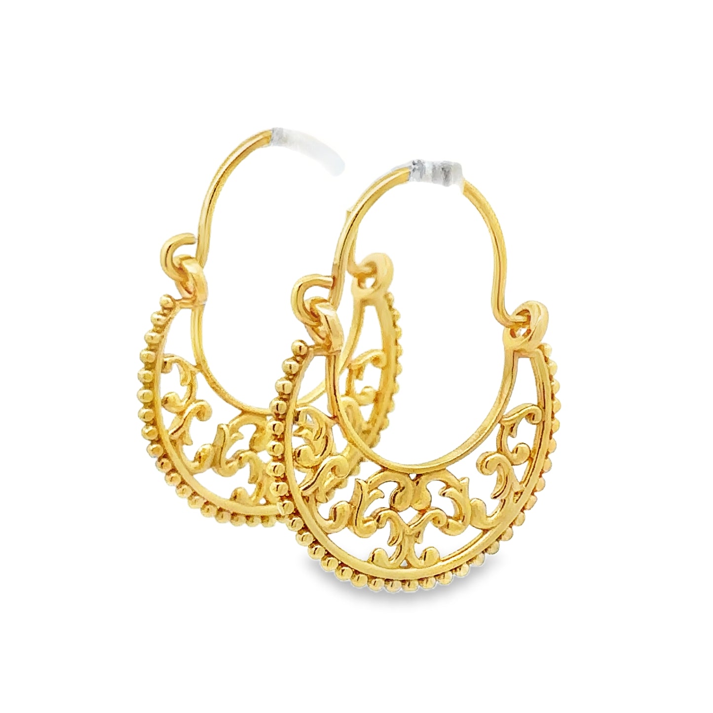 E8162 GOLD PLATED VINE PTTRND FILIGREE HOOP 3.1G