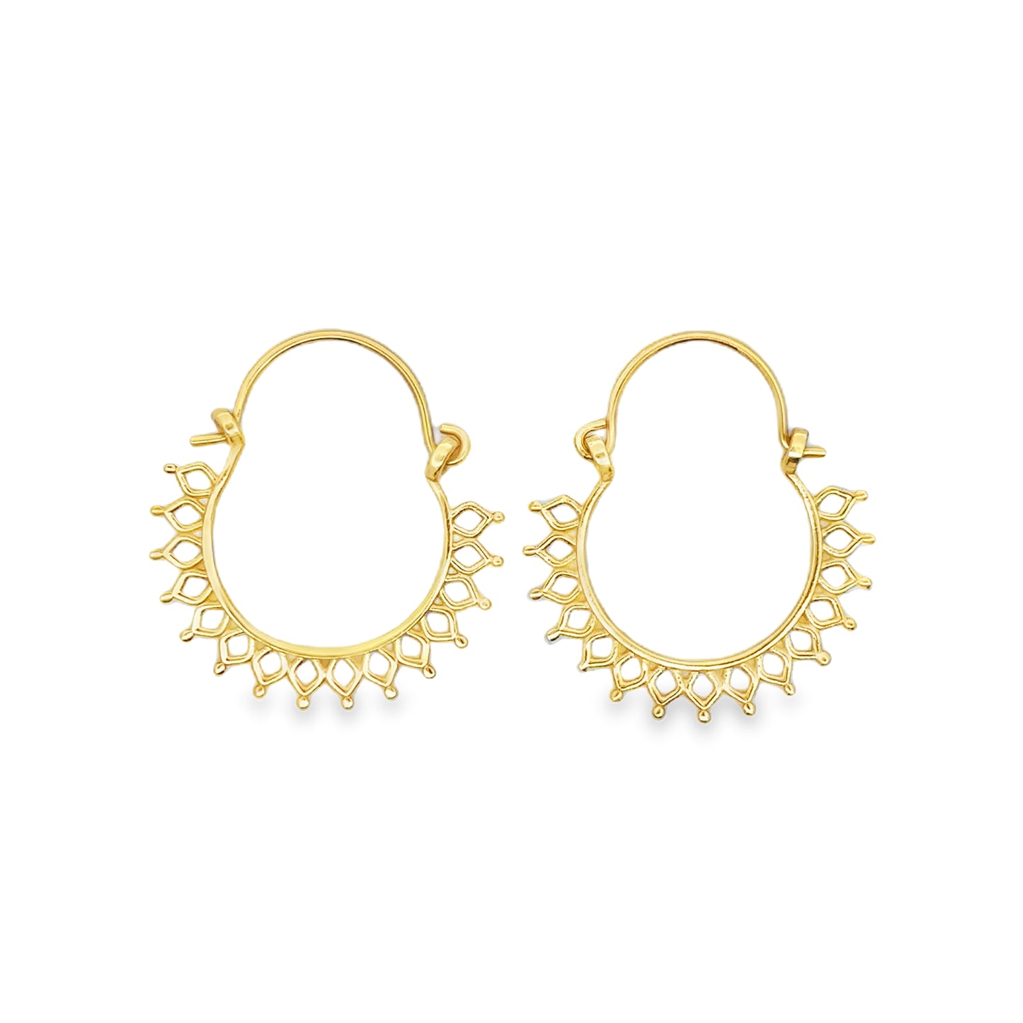 E8163 GOLD PLATED POINTD RAY PTTRND FILIGREE HOOP 2.2G