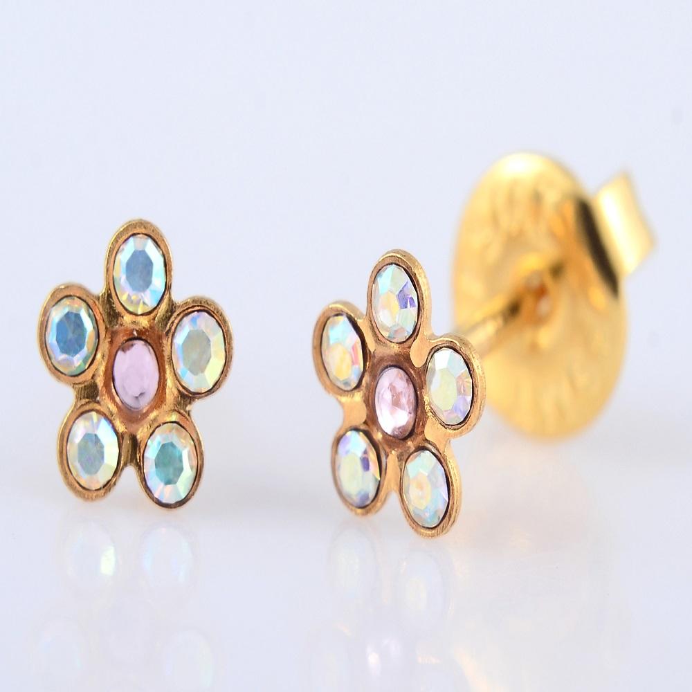 E7998 GPLTD SS 6MM DAISY WTH ROSE AND WHT CRYSTL BBYEARPRCNG