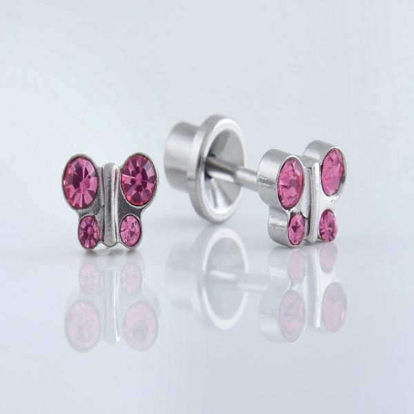 E8000 SS 6MM BTTRFLLY WITH 4CZ AT WINGS BBYEARPIERCING