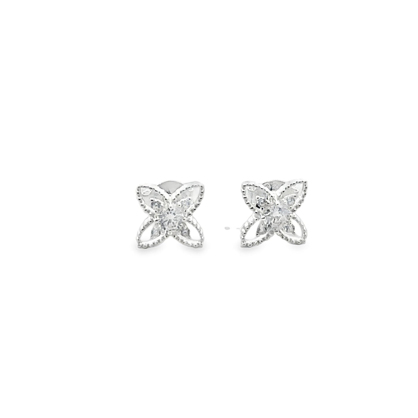 E8173 SILVER 4PETAL FLOWER WTH MID CZ 0.9G