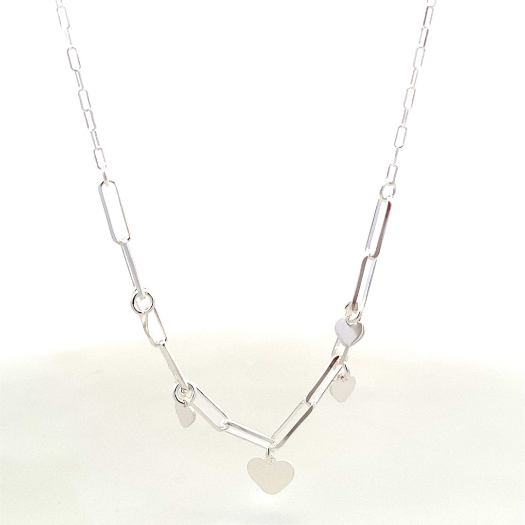 N5165 16IN+1IN SILVER ROLO CHAIN WTH 2 BALLS 3 MVNG HEARTS 3.5G