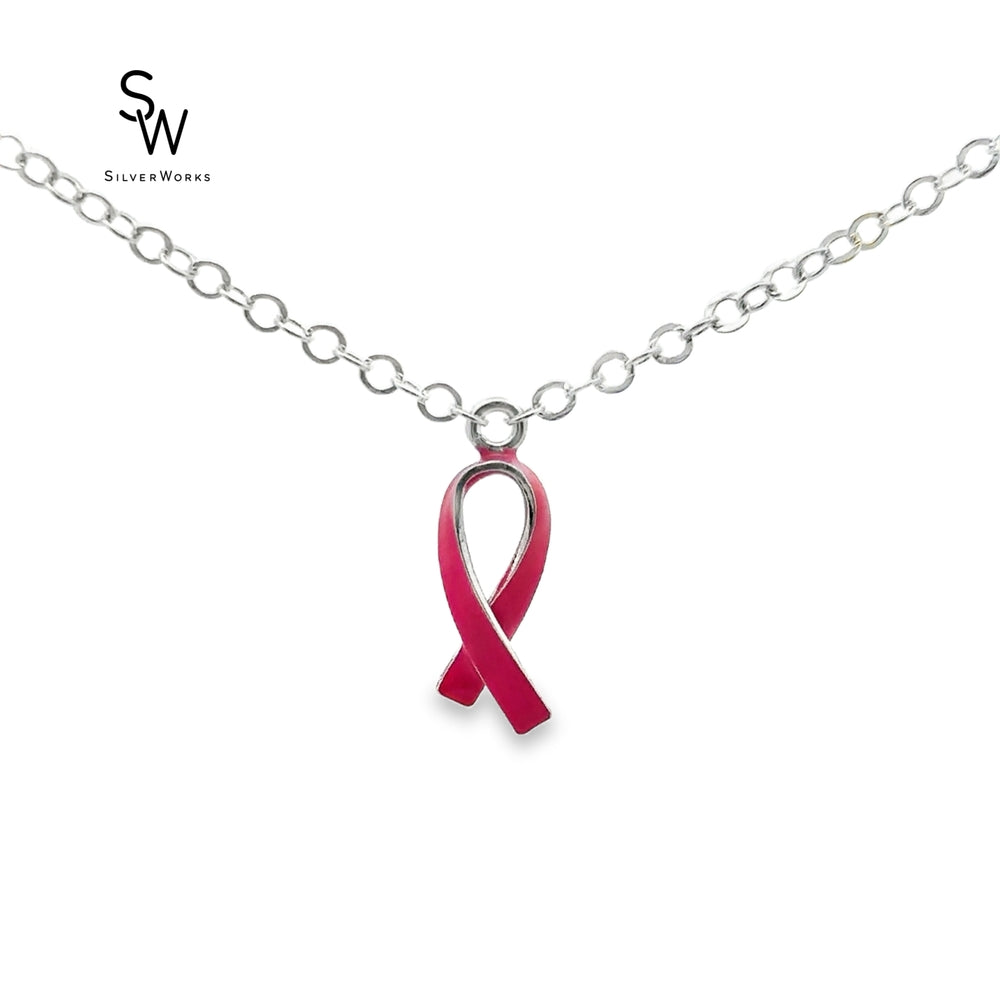 Rhema Pink Ribbon 925 Sterling Silver Pendant Necklace