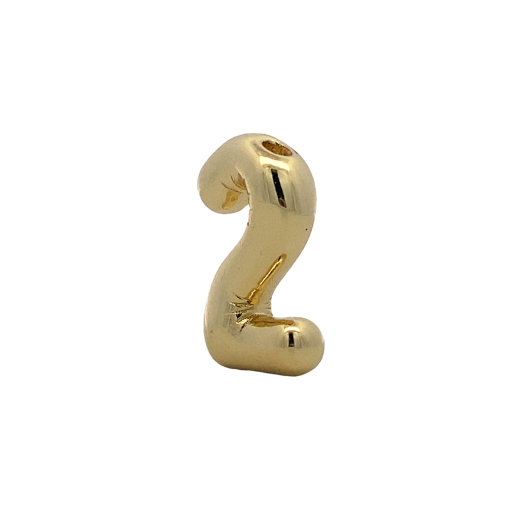 Number "2" Gold Pendant 925 Sterling Silver